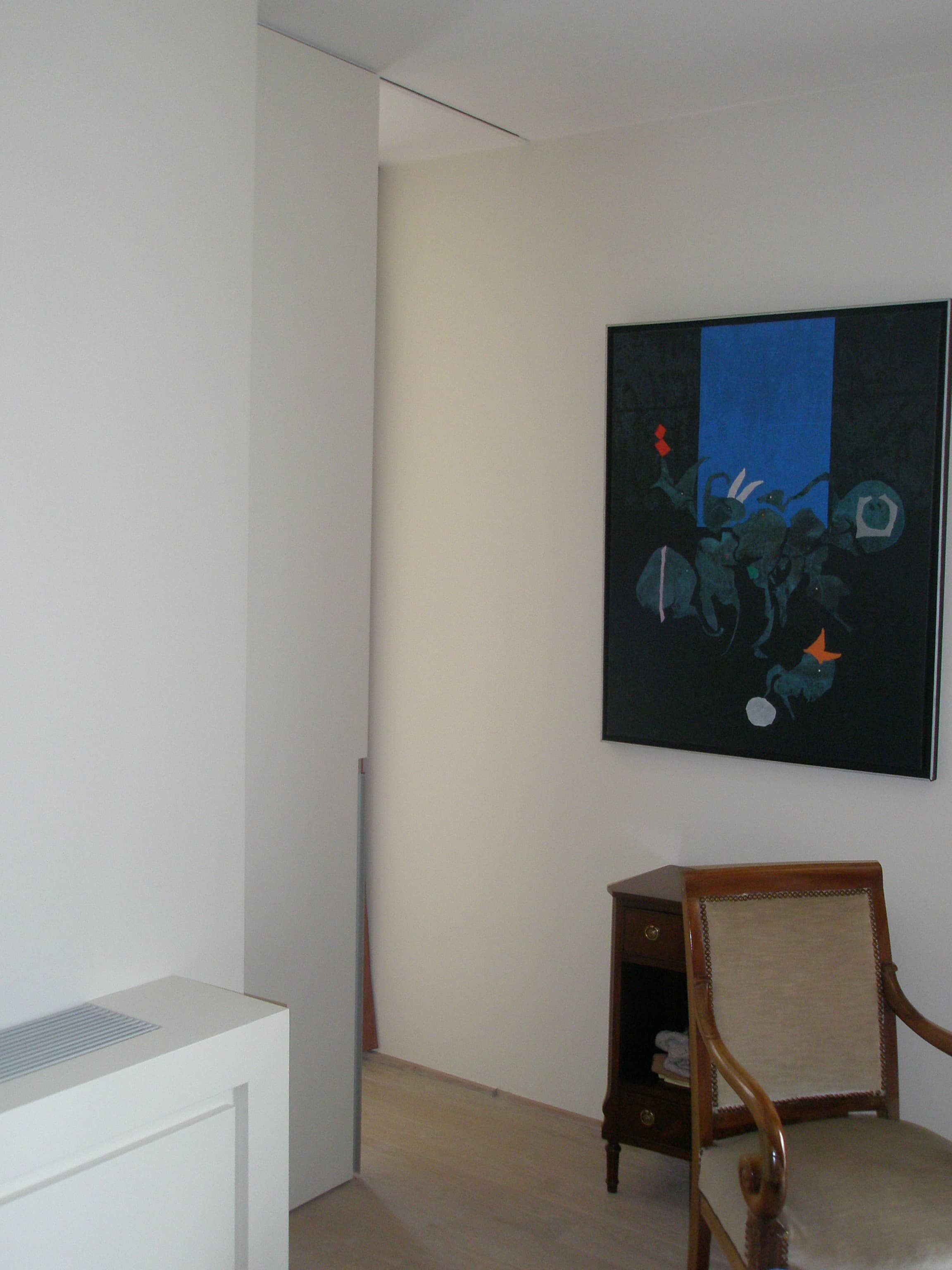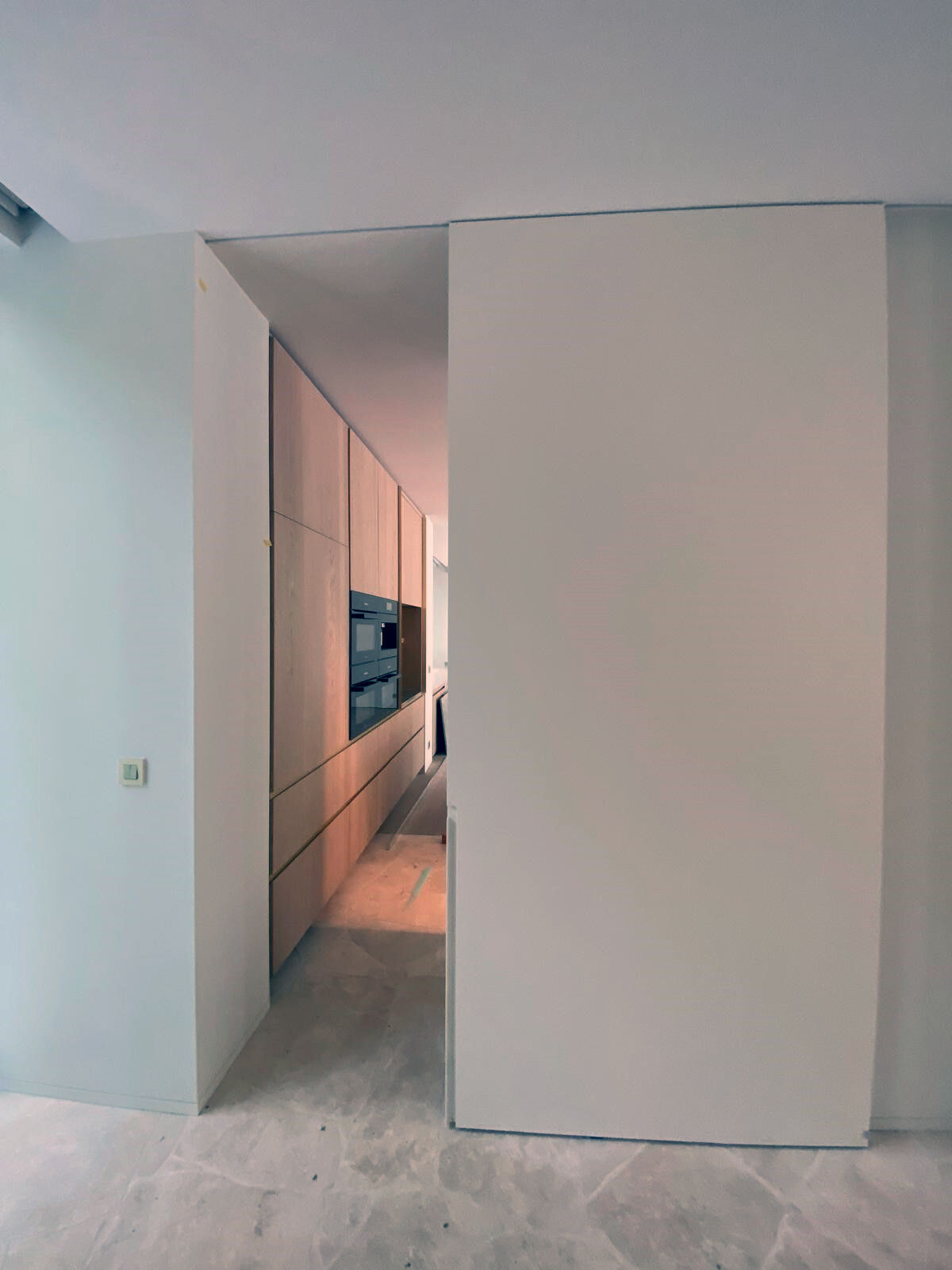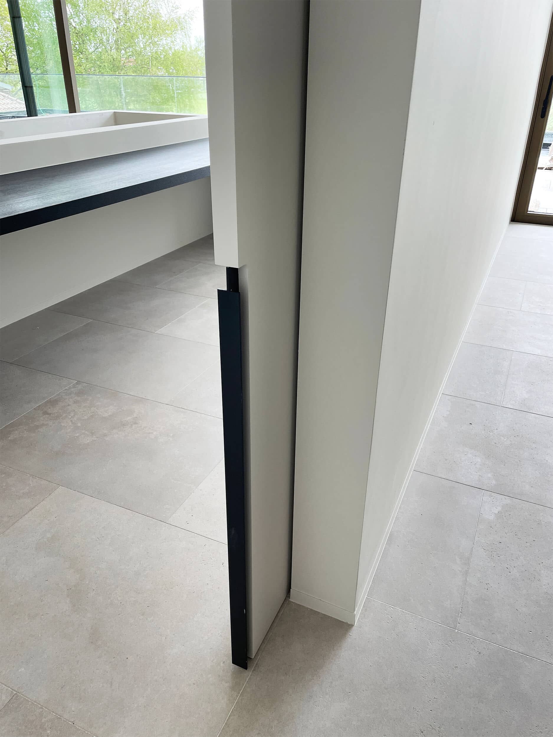 Het railsysteem kan op verschillende manieren worden gemonteerd. Naargelang de plafondstructuur (beton, verlaagd plafond, ijzeren balk) kan de rail al dan niet volledig in het plafond worden ingewerkt. Onderaan de deur wordt een onzichtbare geleider gemonteerd. De schuifdeuren kunnen in verschillende varianten worden gemaakt. Zo kunnen de schuifdeuren al dan niet uit meerdere delen worden vervaardigd.